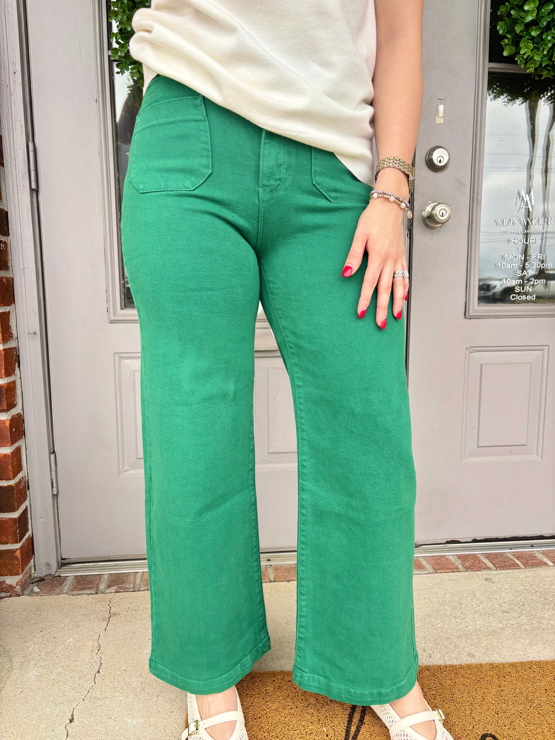Green Patch Pocket Wide Leg Jean